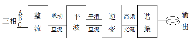 GGP系列固態(tài)高頻電源采用現(xiàn)代電力電子(交-直-交)變換技術,將三相工頻50Hz的交流電經(jīng)整流單元轉變?yōu)槊}動直流,然后通過濾波單元變換為平滑直流,再通過逆變器將直流電轉變?yōu)閱蜗喔哳l交流電(100~600kHz)送至匹配變壓器,為由曹路電容、感應器等組成的串聯(lián)諧振電路提供能量,感應器通過非接觸方式將能量傳遞給工件,以達到感應加熱的目的。該電源采用MOSFET模塊作為逆變器的核心元器件,整流和逆變單元均采用單片機作為核心控制器件,具有電路穩(wěn)定可靠、操作簡單、調試方便。